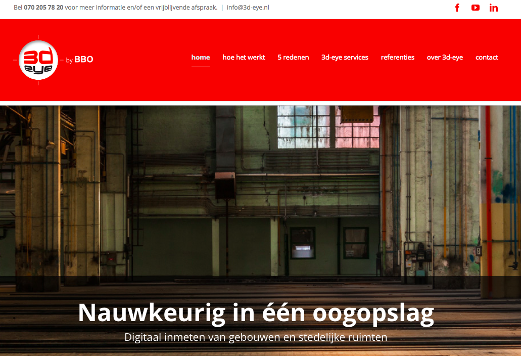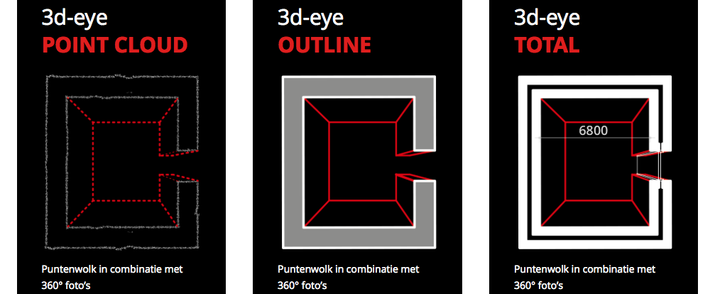 3d-eye levert de nieuwste scandienst voor het digitaal inmeten en verzamelen van cruciale basisinformatie t.b.v. ontwerp- en bouwplannen. 3d-eye brengt, behalve bestaande bouwwerken, ook stedenbouwkundige ruimten in kaart. De scans (pointcloud), gemaakt door de Faro Focus 3d, in combinatie met 360° foto’s zijn door vele partijen te gebruiken. Denk aan architecten, aannemers, makelaars, ontwikkelaars, gebouwbeheerders, installatiebureaus etc.